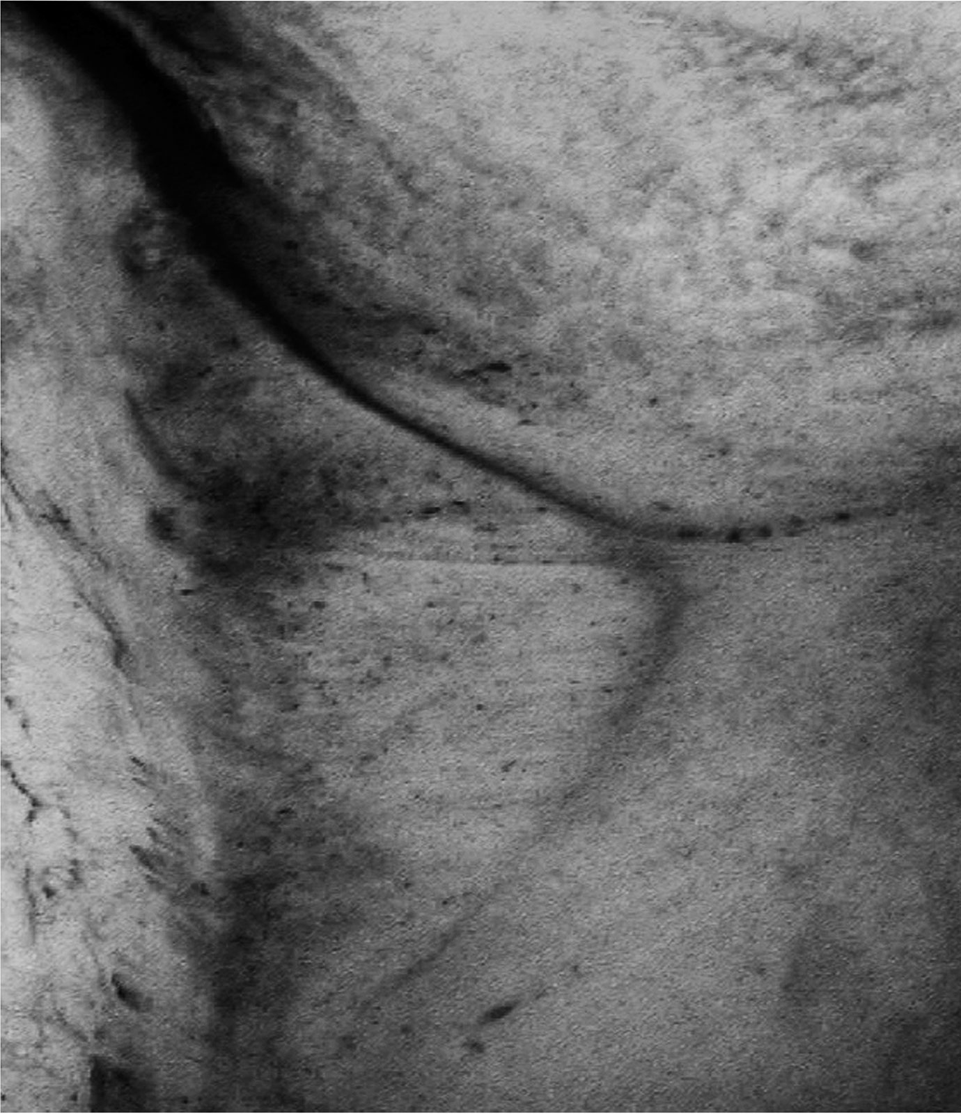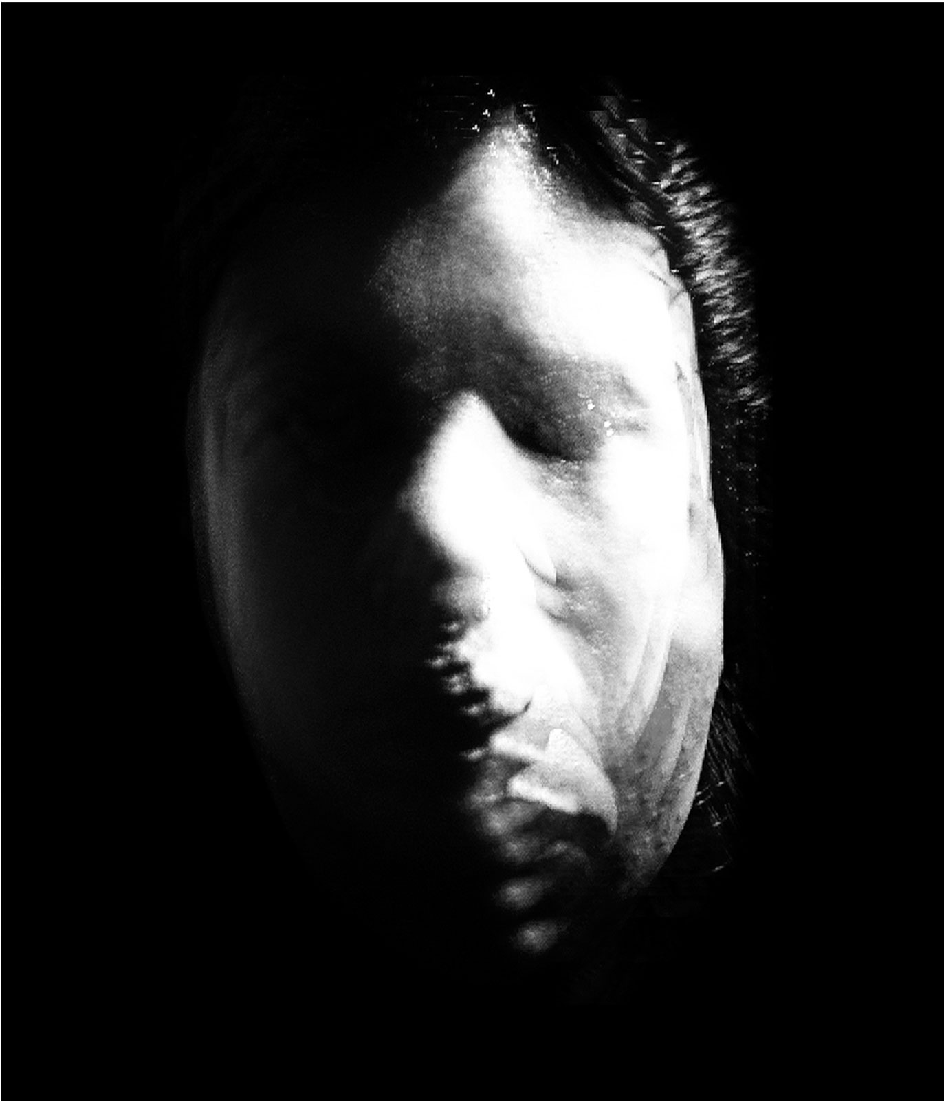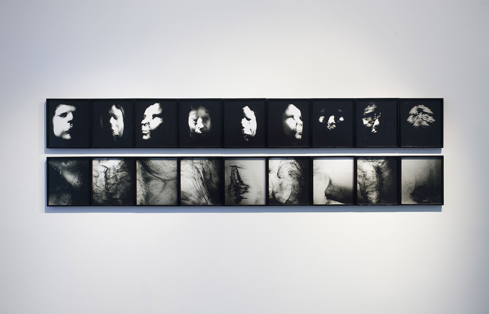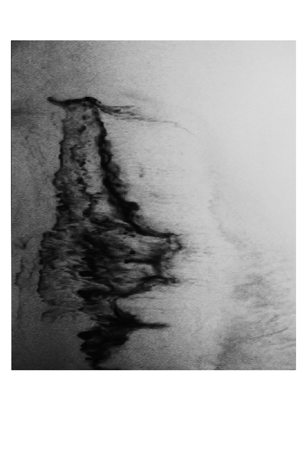 In Aftermath - Self Portrait the surface of the photographic image is physically dissolved by immersion in a bleach solution. The process of its dissolution is documented, as it first distorts the recognizable portrait image and finally renders it completely abstract.