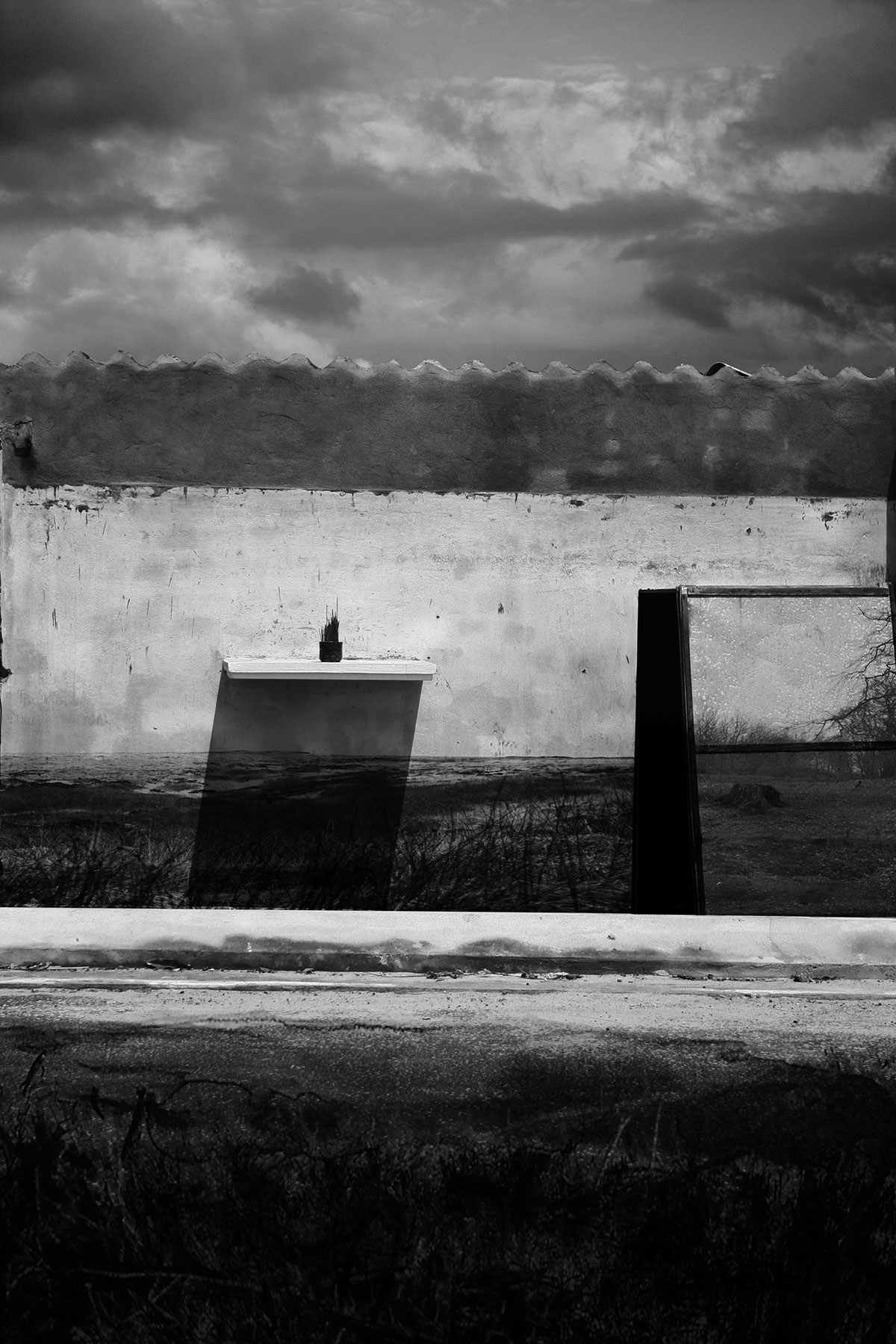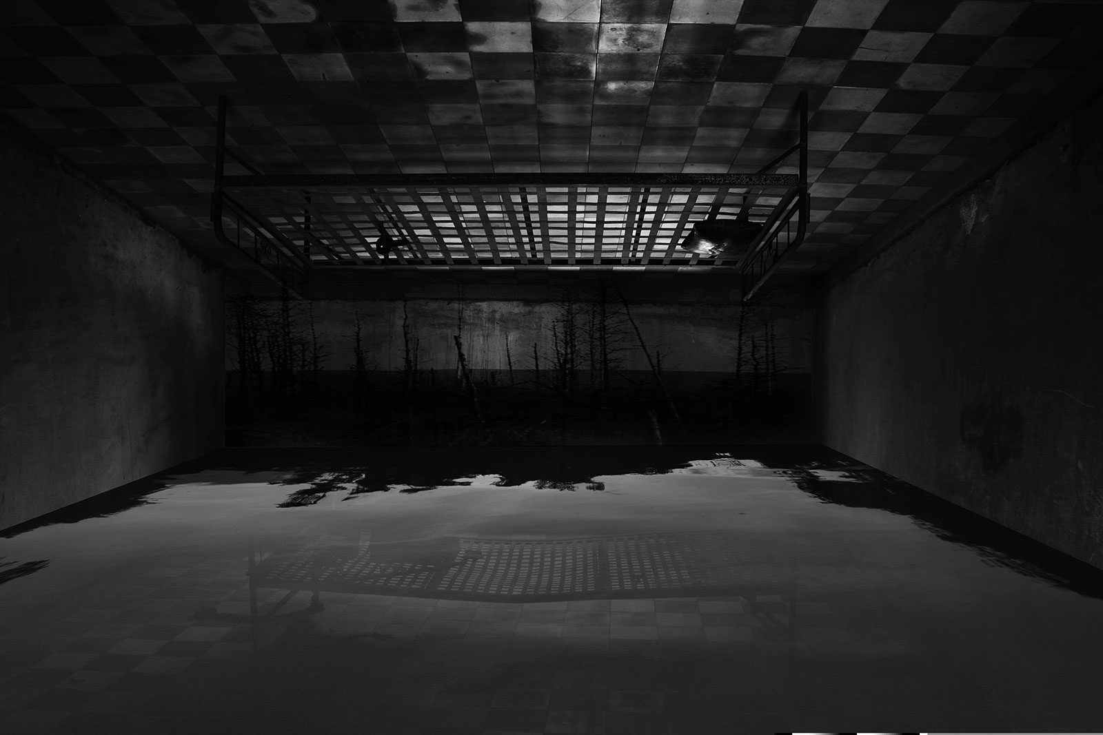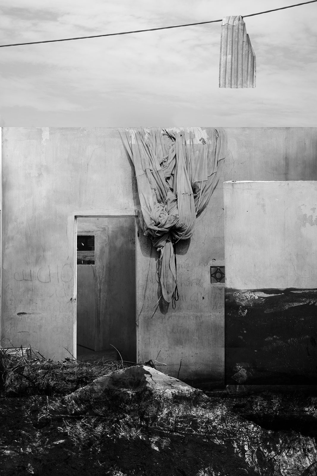 Aftermath and Perimeter combine original imagery gathered from Vietnam, Cambodia and the west of Ireland. These are then physically worked into using ink and paint to create imagery resembling painted stage sets, with surface and depth becoming uncertain.