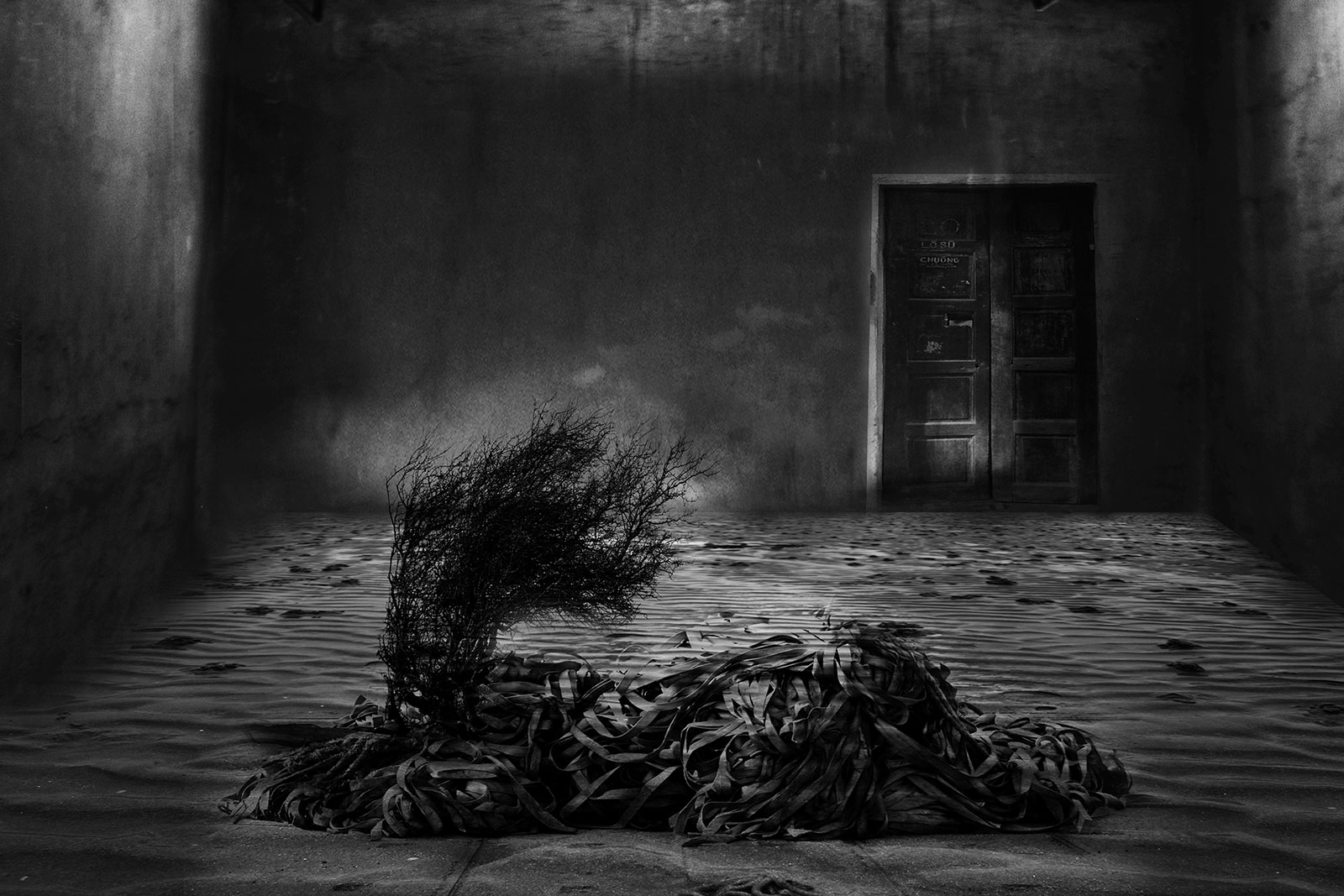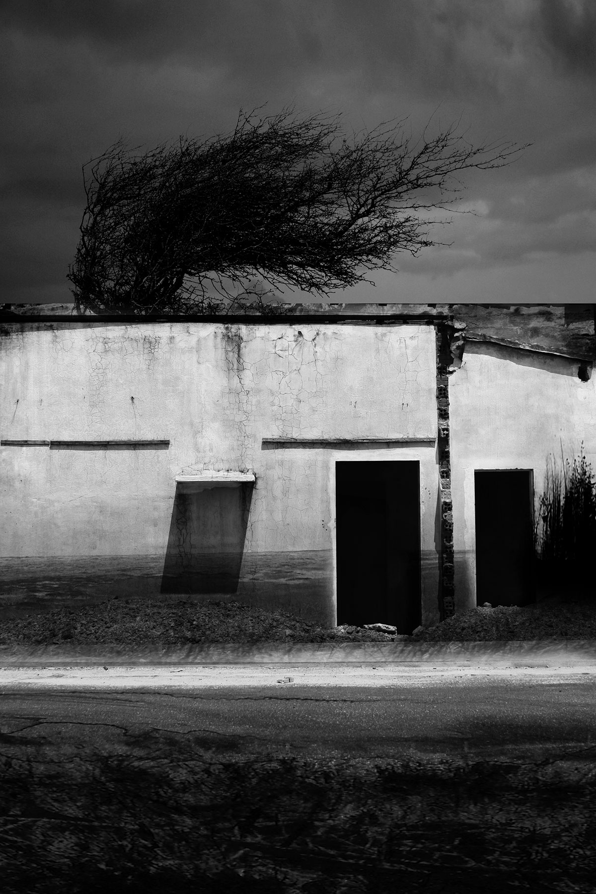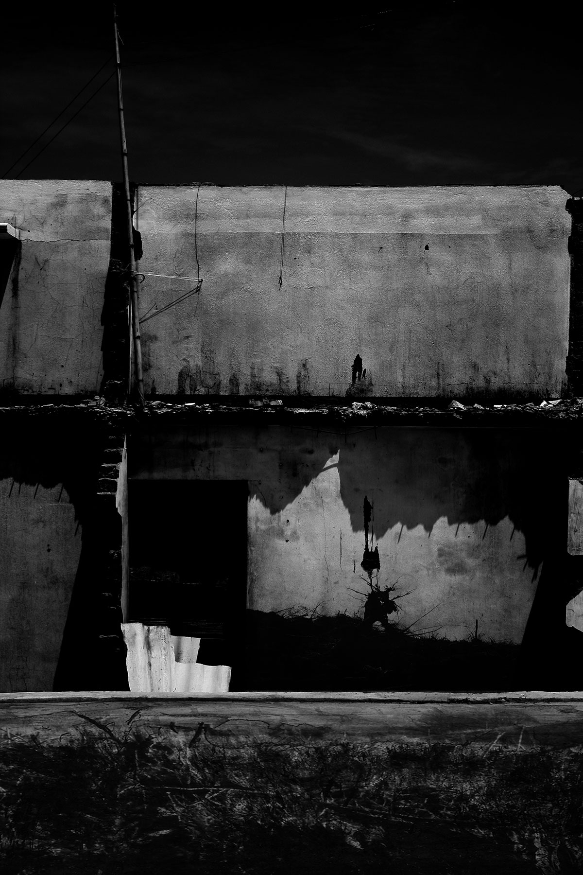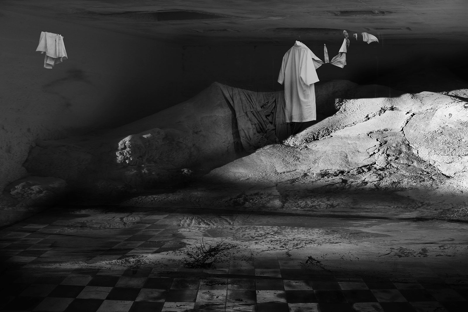 Aftermath and Perimeter combine original imagery gathered from Vietnam, Cambodia and the west of Ireland. These are then physically worked into using ink and paint to create imagery resembling painted stage sets, with surface and depth becoming uncertain.