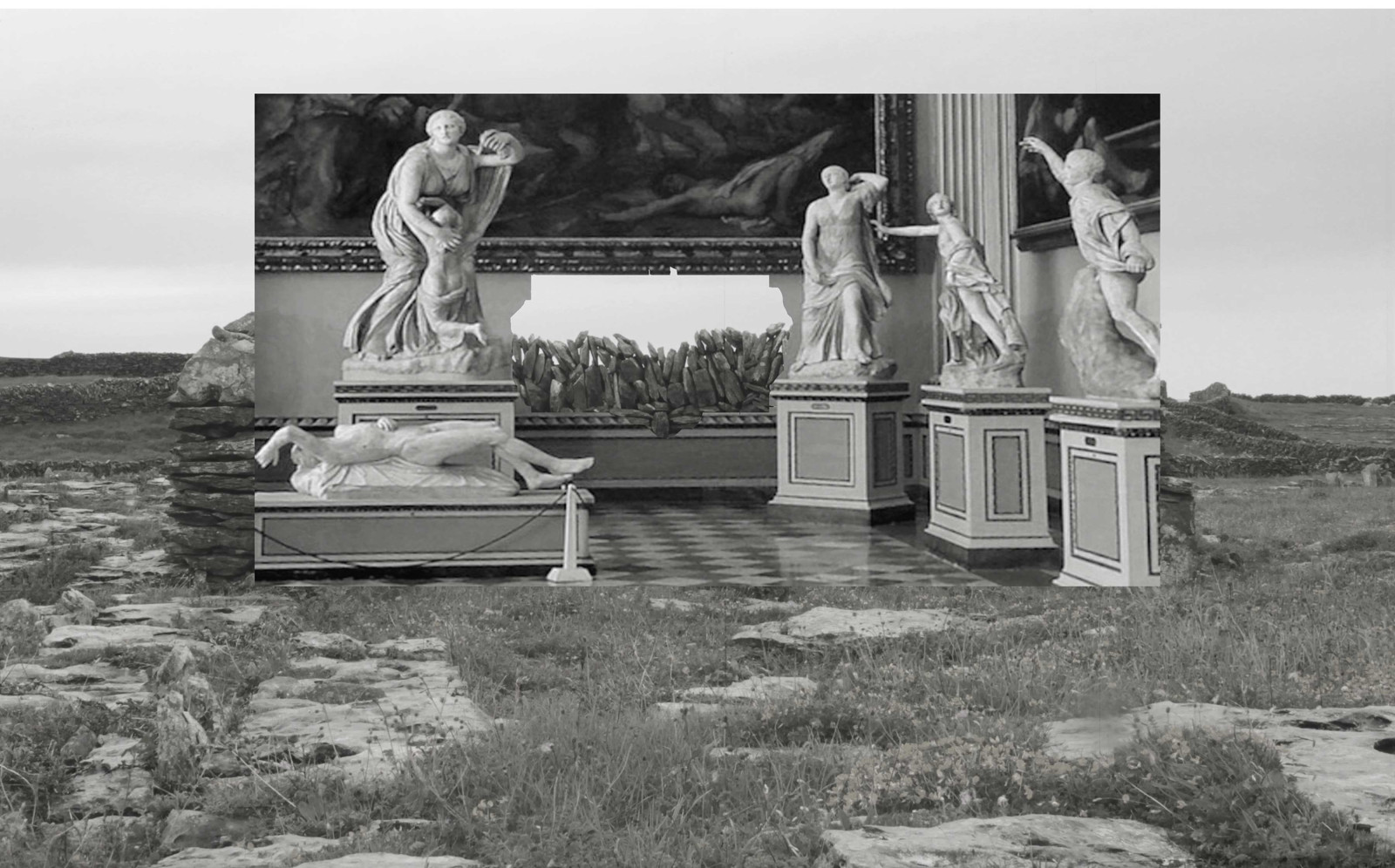 This photographic series combines imagery from four disparate sources: neo- classical sculpture, west of Ireland landscapes, found images and the studio setting. In contrast to the video work, the processes here are quick and playful, using simple collage techniques to surprise the imagery into a new and permeable series of connections.