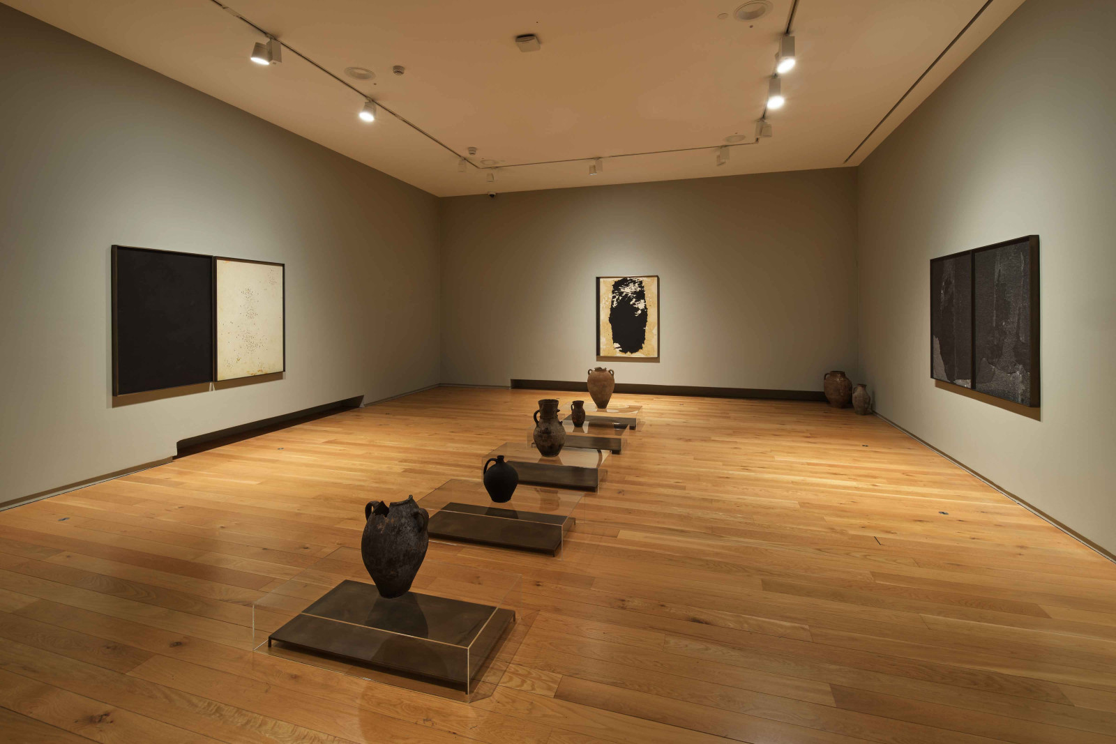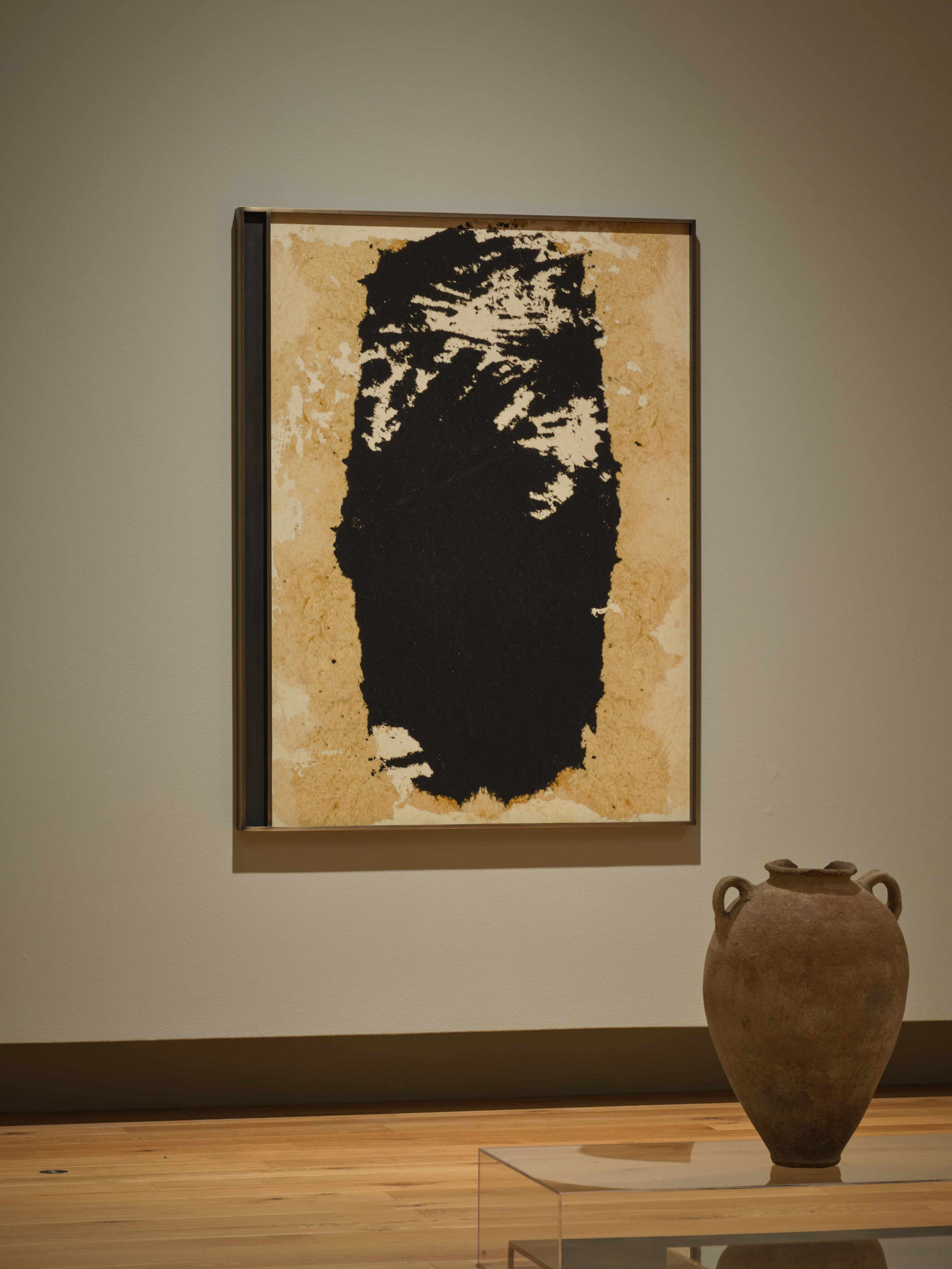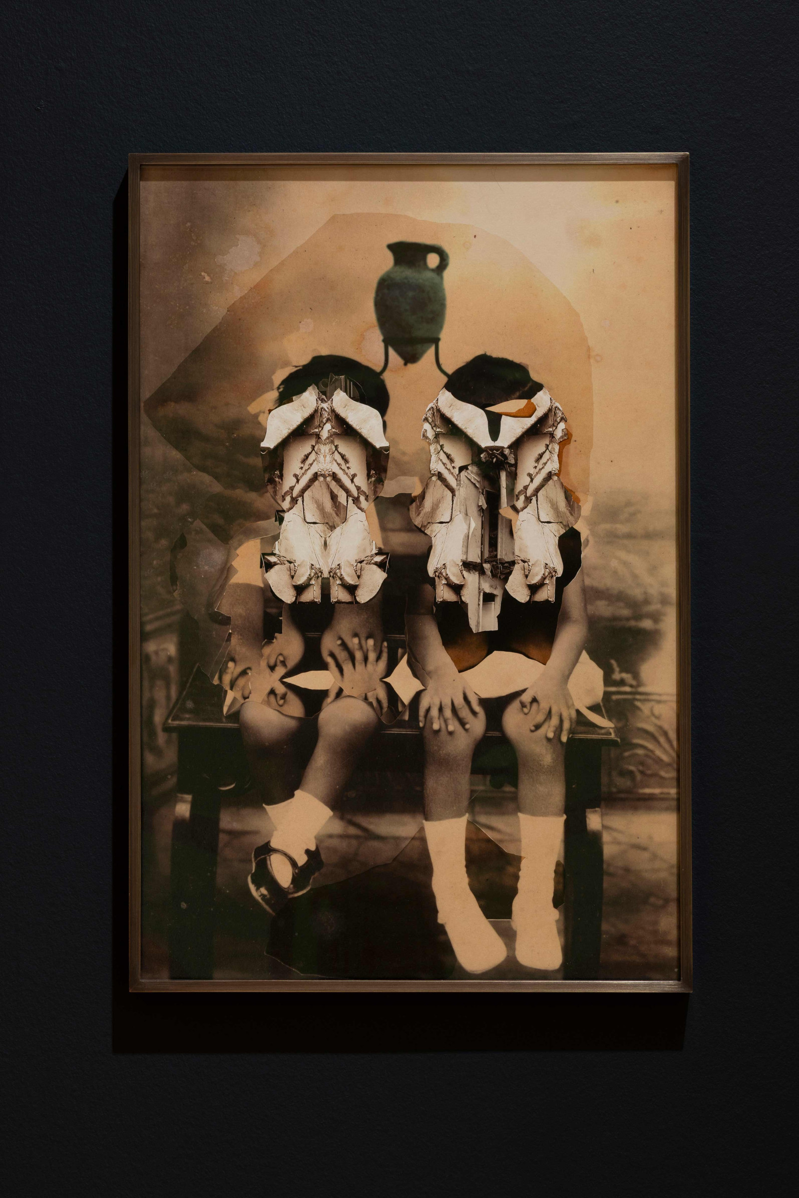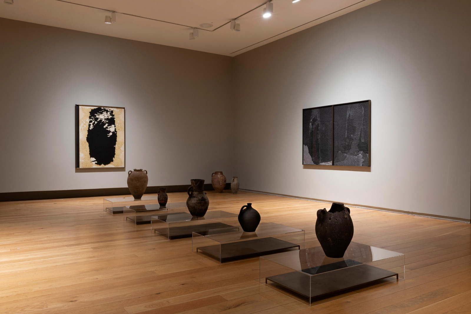of found ceramic vessels, arranged in a manner that at once suggests and confounds museological display. No longer protected by their enclosures, they appear vulnerable yet animate—objects dislodged from systems of classification and returned to a state of uncertainty. In this quiet undoing of order and preservation, the work gestures toward the instability of cultural memory and the fragile architectures through which we attempt to contain it.