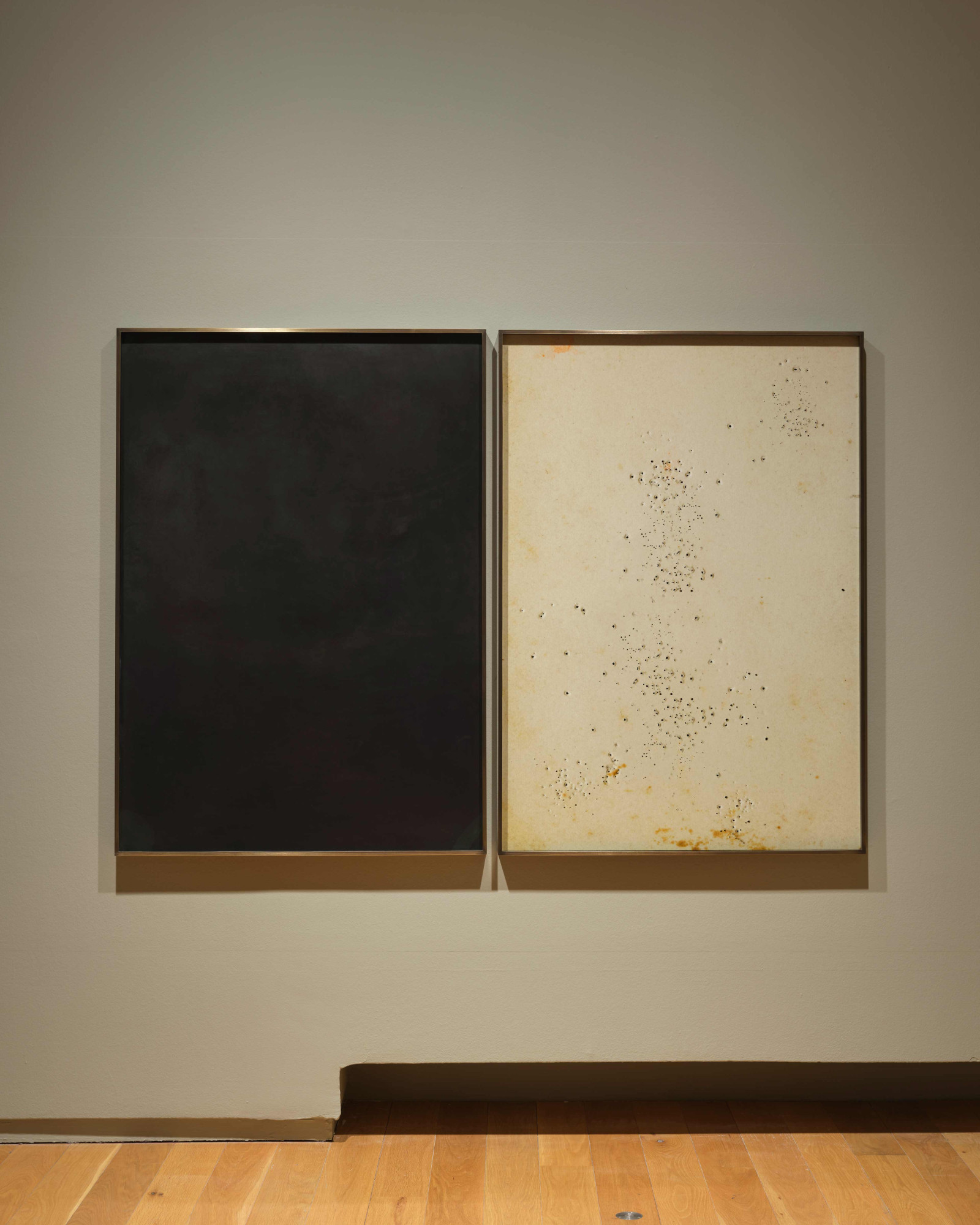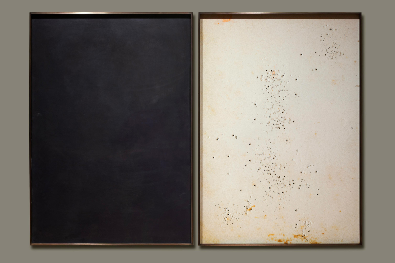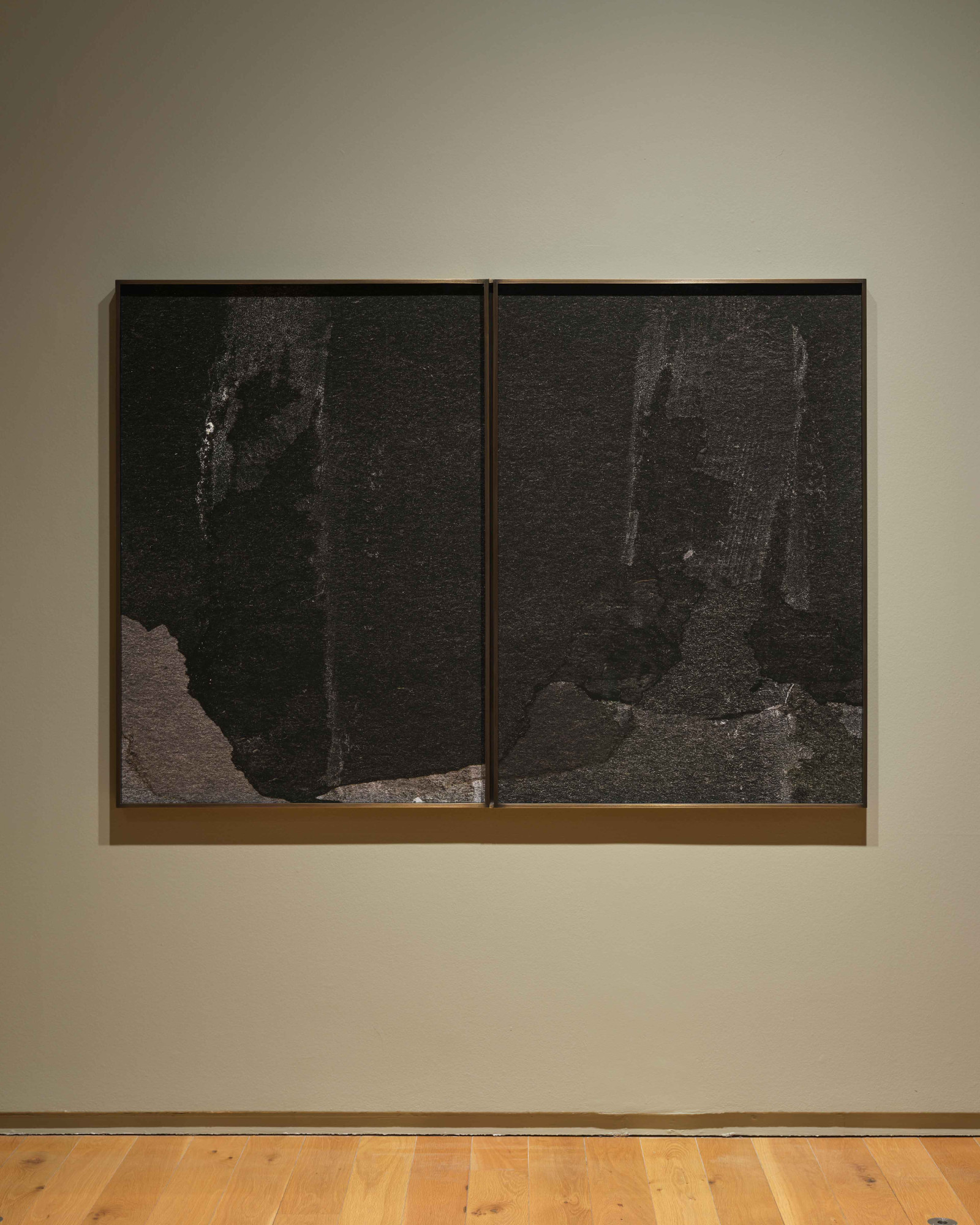 This body of abstract prints and objects approaches the archive through ideas of absence and erasure. In Untitled (Surface #6) a found photograph is obscured with bitumen, while the Picture series depicts the reverse sides of early photographic prints. Reworked in places by hand and set in custom brass frames that echo margins and book spines, they resemble fragments from a future archive where only traces of photographs remain. These works shift the photograph’s meaning away from record and evidence, towards the symbolic and speculative - shaped less by what was preserved than by the gaps of memory and loss.